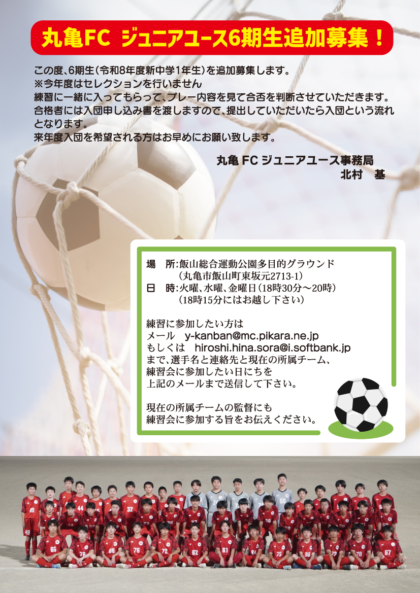 - 2025.12.05 丸亀FCジュニアユース6期生追加募集