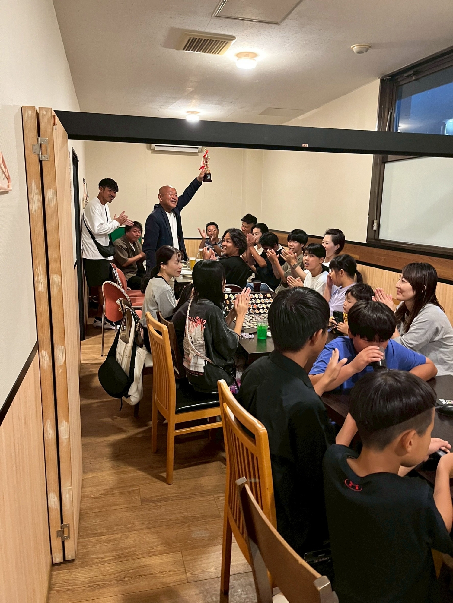 2日目の夜は打ち上げも兼ねてレクリエーションを行いました。坂出グランドホテルのビアガーデンにいき、親子で楽しみました🍻連携を取りながら仲良く楽しく今後も進んで行きたいです⚽️」